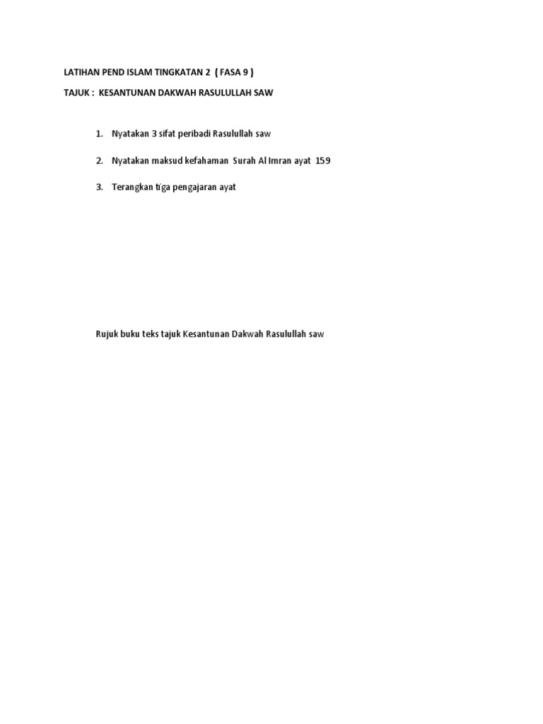 Nyatakan 3 Sifat Peribadi Rasulullah Saw 2 Nyatakan Maksud Kefahaman Surah Al Imran Ayat 159 3 Terangkan Tiga Pengajaran Ayat