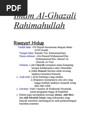Sejak kecil lagi berliau telah dididikdengan akhlak yang mulia. BIOGRAFI IMAM AL GHAZALI Nama. Kasih akan Allah SWT.